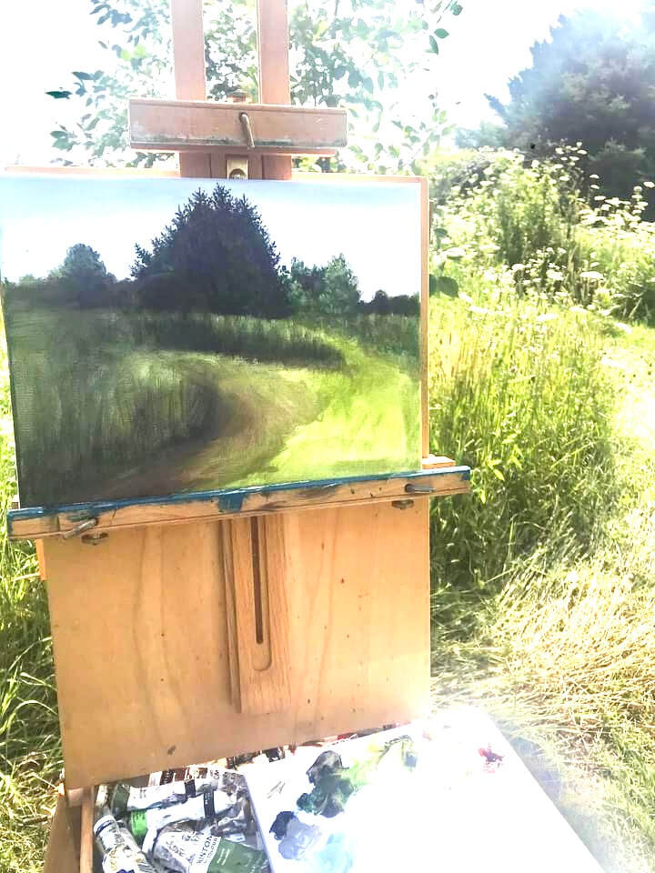 It's been a while (too long) since I've posted news, but I've been keeping busy! I had the AMAZING opportunity to go plein air painting with the CAPRAC (Conseil des Arts Prescott Russell Art Council) art group at Fiat Farms recently! It was so good to get out and paint, and to connect with other local artists. I may take my paiting and do a little finishing in the studio later. Looking forward to doing this again!